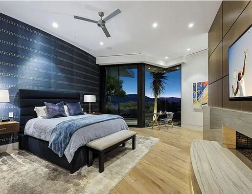 This contemporary desert retreat offers guests a luxurious vacation experience in the heart of Coachella Valley. Situated in the Palm Desert Big Horn Country Club, this contemporary Guy Dreier architectural masterpiece features a spacious open floor plan with 4 bedrooms plus a separate casita. areas featuring high ceilings, and exclusive amenities such as spa-like bathrooms and an outdoor pool, guests can indulge in a serene escape by the swimming pool/hot tub while they take in breathtaking views of both the golf course and surrounding mountains.